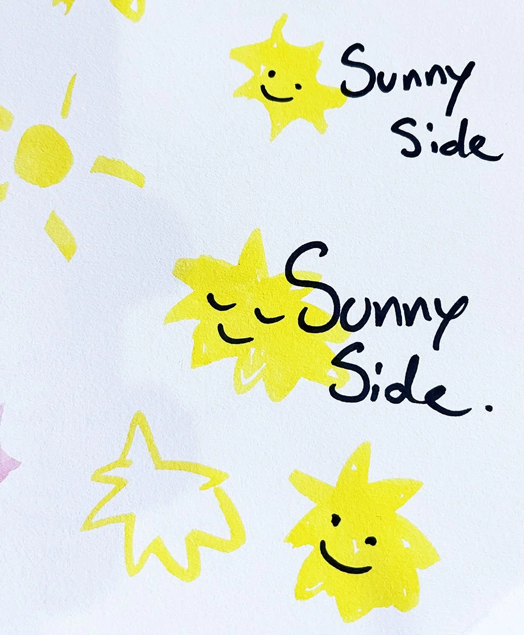 “Sunny” was born after hours of sketches and ideation for Sunny Side’s logo. After a little doodle with a yellow highlighter, the concept for the brand’s mascot was born. The sun was a very prominent subject throughout logo ideation, as the sun appears as a symbol throughout the country, including their flag. The aim of the brand was to create a fun and friendly atmosphere, which the Sunny Side mark achieves.